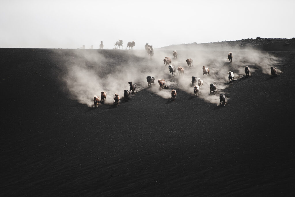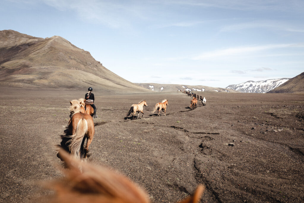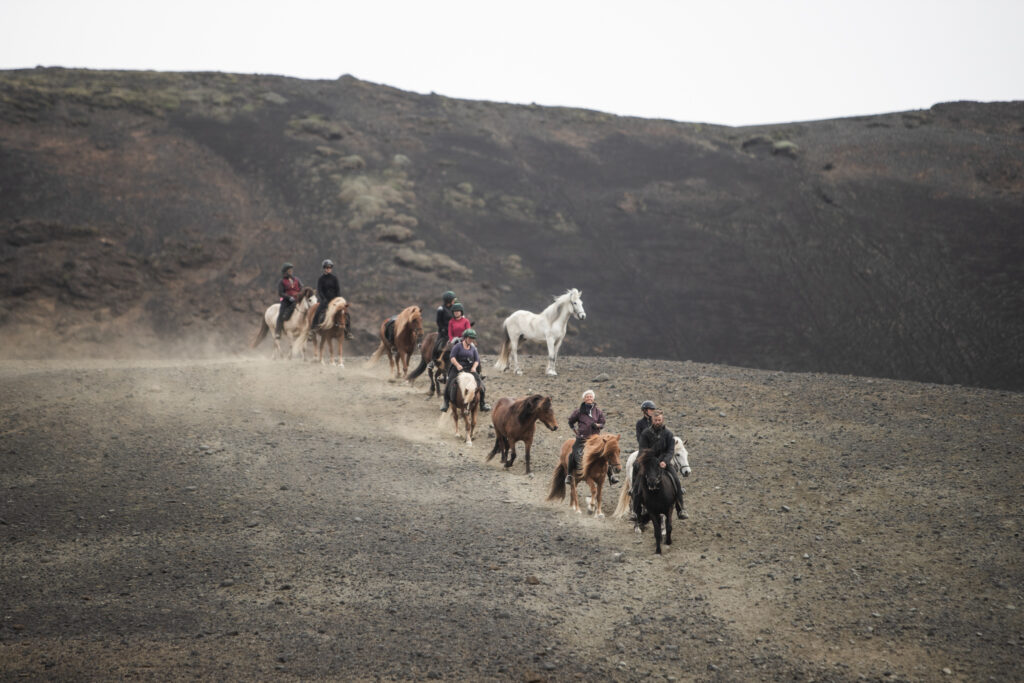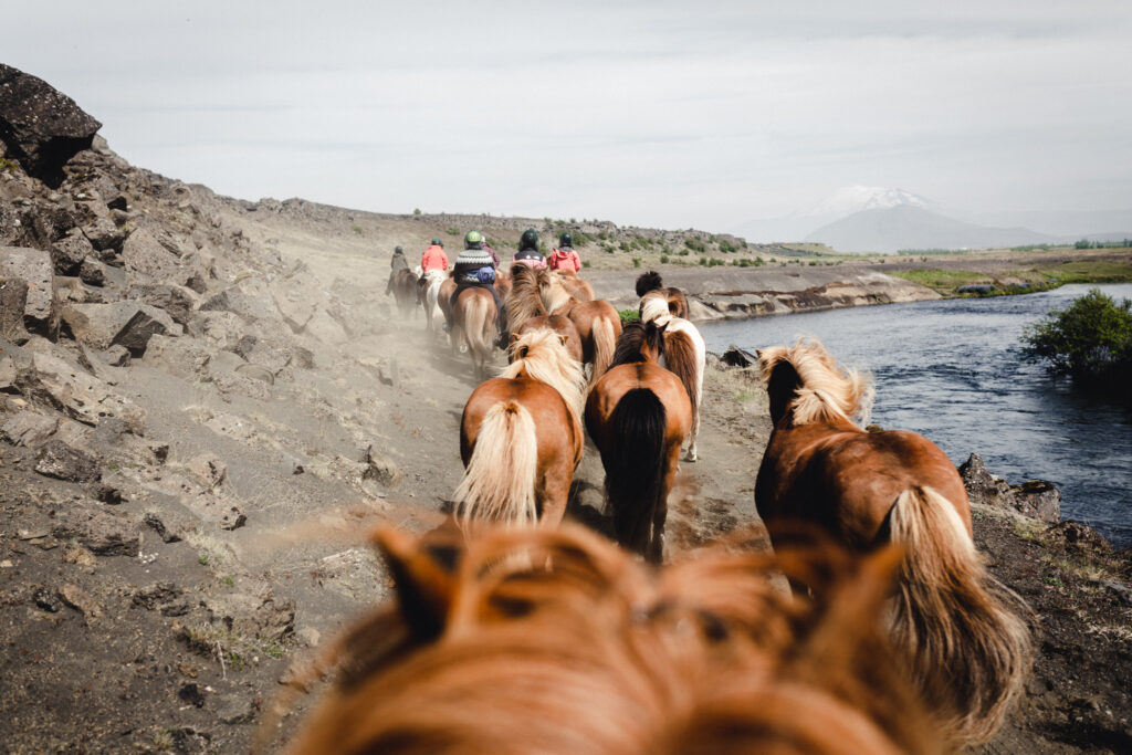 Départ tôt le matin d’Afangagil pour le retour à la ferme Austvadsholt. Traversée des déserts de cendres et d’autres régions impressionnantes et inhabitables autour du volcan Hekla. Passage à travers les terres agricoles et franchissement de la rivière Rangá pour rejoindre les prairies de la ferme, où les chevaux sont libérés de leurs tâches et peuvent enfin se reposer. Environ 7 heures de randonnée.